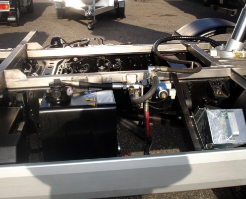 L’aluminium constitue un choix technique particulièrement avantageux pour réduire le poids sans compromettre la rigidité de la structure. Cette conception permet d’augmenter la charge utile disponible et d’améliorer le comportement routier du véhicule. La hauteur d’ensemble reste maîtrisée afin de maintenir le centre de gravité de la charge au plus bas, ce qui renforce la sécurité lors des phases de chargement et de déchargement tout en apportant plus de précision dans les manœuvres.