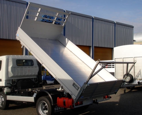 La qualité d’un pont basculant 3 côtés repose également sur la cohérence globale de sa conception. Le dimensionnement de la plateforme, l’intégration du système de basculement, la conception des ridelles et le niveau de finition sont pensés dans les moindres détails pour offrir un équipement robuste, durable et soigné. Le résultat proposé par la Carrosserie Sensi est une carrosserie aluminium professionnelle, conçue pour limiter l’usure, réduire les immobilisations et répondre avec fiabilité aux exigences concrètes du métier.